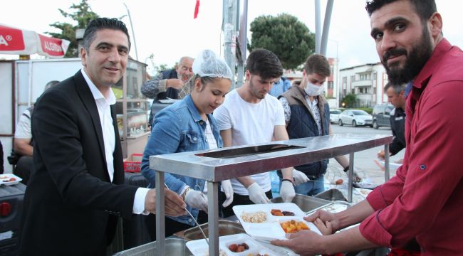İlk iftarda yemekler de Menderes Belediye Başkanı Mustafa Kayalar ve eşi Aslı Kayalar tarafından dağıtıldı. Vatandaşlarla tek tek ilgilenen Başkan Kayalar, yemek için sıraya giren vatandaşlara kendi elleriyle yemeklerden ikram etti.