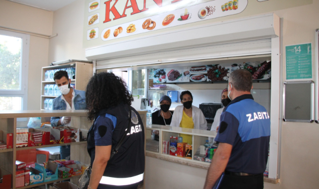 Menderes Belediyesi Zabıta Müdürlüğü ve Ruhsat Müdürlüğü tarafından sürdürülen çalışmalar kapsamında ilçedeki okullarda kantin denetimi gerçekleştiriliyor. Uygulama kapsamında temizlik ve hijyen başta olmak üzere gıda maddelerinin son kullanım tarihleri, satılması yasak olan ürün denetimi, işyeri açma ve çalışma ruhsatı denetimleri gerçekleştiriliyor.