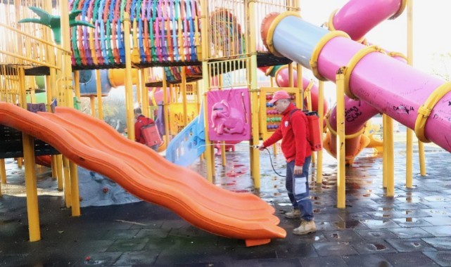 Menderes Belediyesi, salgın hastalıklara karşı önlem olarak parklarda dezenfekte işlemleri gerçekleştirdi.Menderes Belediyesi Park Bahçeler Müdürlüğü, özellikle son dönemde çocuklarda artan salgın hastalıklara önlem almak adına parkları dezenfekte etti. Parklarda yer alan tüm oyun ve spor grupları ile oturma alanları önce suyla yıkandı ardından da dezenfeksiyon işlemi uygulandı.“Daima özen göstereceğiz”Çalışmalar hakkında konuşan Menderes Belediye Başkanı İlkay Çiçek, “Çocuklarımızın sağlığı ve geleceğine verdiğimiz önemi her defasında ifade ediyoruz. Gelen kış ayları ile birlikte artan salgın hastalıkların yayılımını azaltmak adına parklarımızı dezenfekte ettik. Çocuklarımız için daima gereken özeni göstermeye devam edeceğiz” dedi.