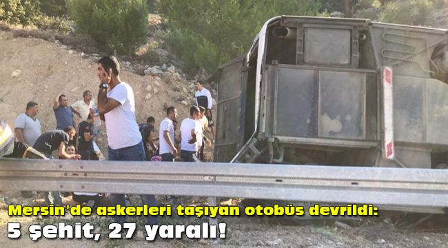 Mersin'in Mut ilçesinde askerleri taşıyan otobüsün devrilmesi sonucu ilk belirlemelere göre 5 asker şehit oldu, sürücü de hayatını kaybetti ve 10'u ağır 27 kişi yaralandı.