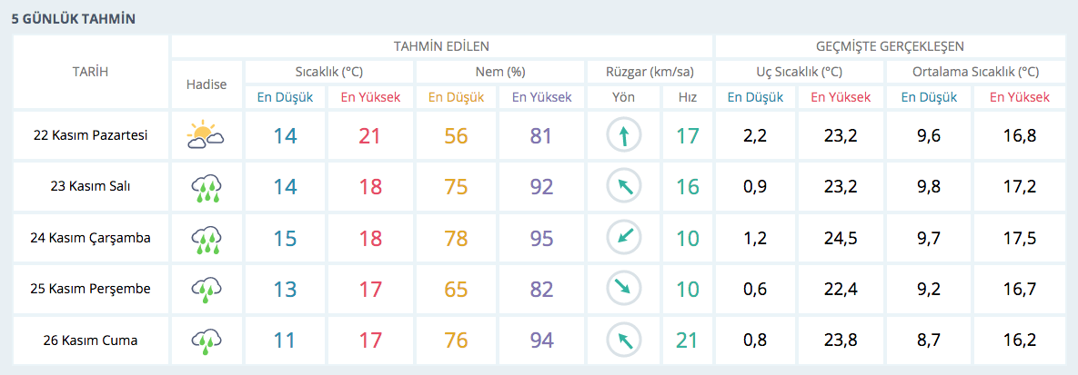 5 GÜNLÜK HAVA RAPORU