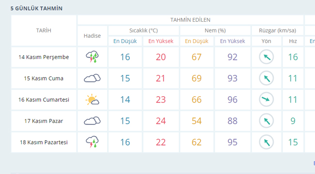 İZMİR'DE 5 GÜNLÜK HAVA DURUMU