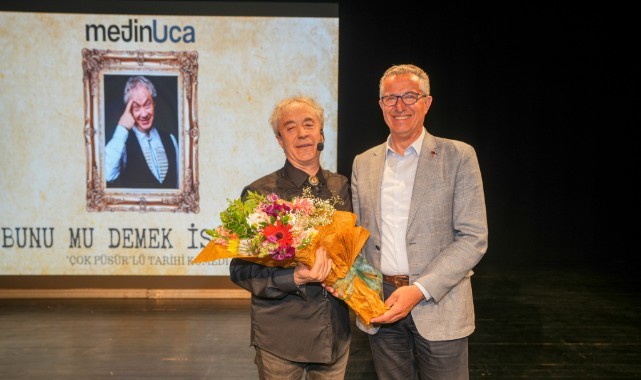 “Bunu mu Demek İstedim?” gösterisini Gaziemir’de sahneleyen Metin Uca, izleyiciyi hem tarihi bir yolculuğa çıkardı hem de güldürdü.