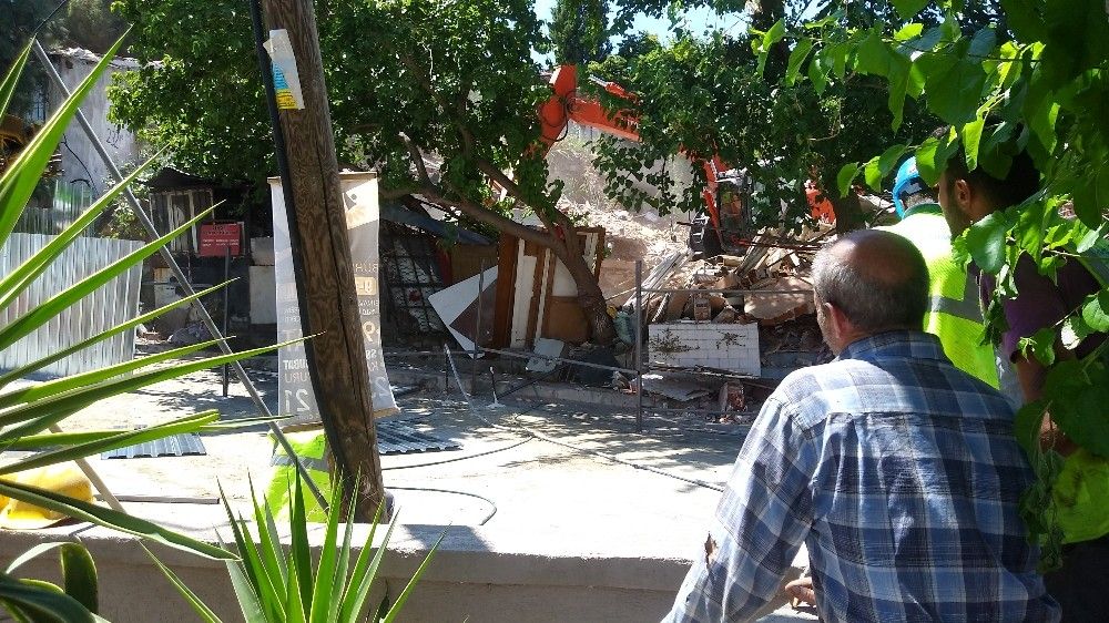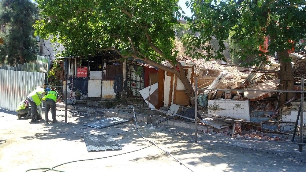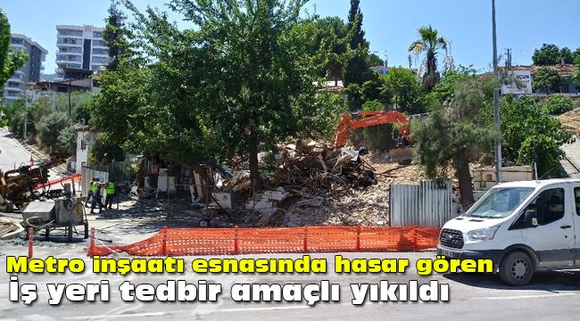 İzmir'de metro inşaatı sırasında iddiaya göre bir iş yerinin duvarında göçük meydana geldi. Söz konusu iş yeri tedbir amaçlı yıkılırken, zeminde de güçlendirme çalışması yapıldı.