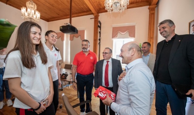 İzmir Büyükşehir Belediye Başkanı Tunç Soyer, 11-19 Ağustos tarihlerinde İzmir’de düzenlenen 16 Yaş Altı Kızlar Avrupa Şampiyonası müsabakaları kapsamında yarın Finlandiya ile maça çıkmaya hazırlanan milli takım oyuncularına moral verdi.