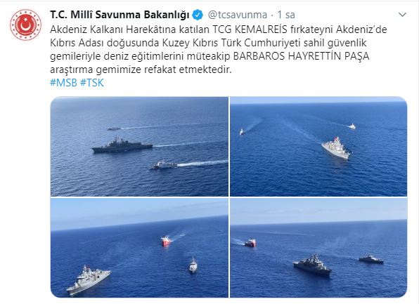 * Akdeniz Kalkanı Harekatı’na katılan TCG KEMALREİS fırkateyni Akdeniz'de Kıbrıs Adası doğusunda Kuzey Kıbrıs Türk Cumhuriyeti sahil güvenlik gemileriyle deniz eğitimlerini müteakip BARBAROS HAYRETTİN PAŞA araştırma gemimize refakat etmektedir.