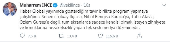 Twitter'dan açıklama yapan İnce şu ifadeleri kullandı: