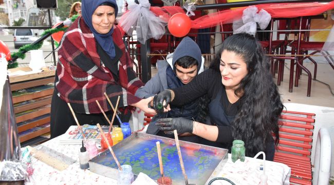 Çamtepe Mahallesi’ndeki Engelli Danışma Merkezi’nde gerçekleştirilen etkinlik, Narlıdere Belediyesi Engelli Komisyonu, okullar ve sivil toplum kuruluşlarının işbirliği ile yapıldı. 300’e yakın engelli birey ve aileleri katıldı. Çocuklar, hayal dünyalarını ebru sanatına dönüştürdü.