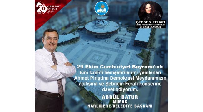 narlıdere Belediyesi, büyüyen ve gelişen Narlıdere ile birlikte ortaya çıkan daha geniş bir meydan ihtiyacını karşılamak amacıyla başlattığı Ahmet Piriştina Demokrasi Meydanı yenileme ve düzenleme çalışmalarını tamamladı. Yenilenen meydanı 29 Ekim Cumhuriyet Bayramı etkinliklerine yetiştirme sözü veren Narlıdere Belediye Başkanı abdül batur “Söz verdiğimiz gibi Cumhuriyet bayramımızı yenilenen Ahmet Piriştina Demokrasi Meydanımız da kutlayacağız. Ülkemiz ve Narlıderemiz için çok önemli bir gün. Narlıdere ve Narlıderelilerin buluşma noktası olacak olan meydanımızın açılışını gerçekleştirirken aynı zamanda Cumhuriyet coşkusunu hemşerilerimizle birlikte yaşayacağız. 95.nci kuruluş yılını kutlayacağımız Cumhuriyet Bayramımızda özellikle gençlerimizi ve tüm hemşehrilerimizi Cumhuriyete ve değerlerine sahip çıkmak için 29 Ekim günü düzenleyeceğimiz etkinliklere ve Ahmet Piriştina Demokrasi Meydanında Saat:21.00’da düzenleyeceğimiz Şebnem Ferah konserine davet ediyorum” dedi.