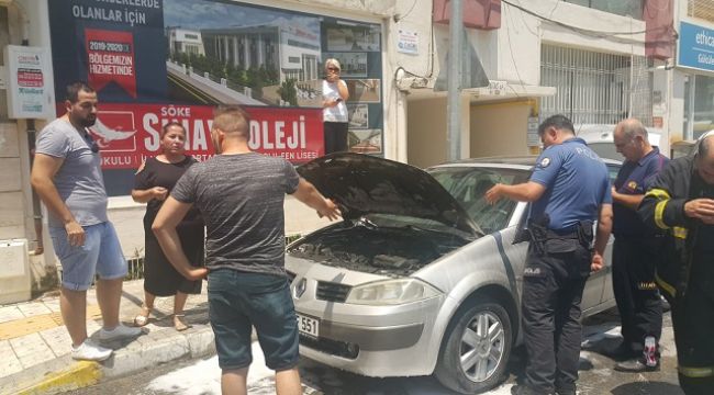 Aydın'ın Söke ilçesinde satışı gerçekleştirilecek otomobil için noteri bekleyen taraflar, aracın yanmasıyla üzüntü yaşadı.
