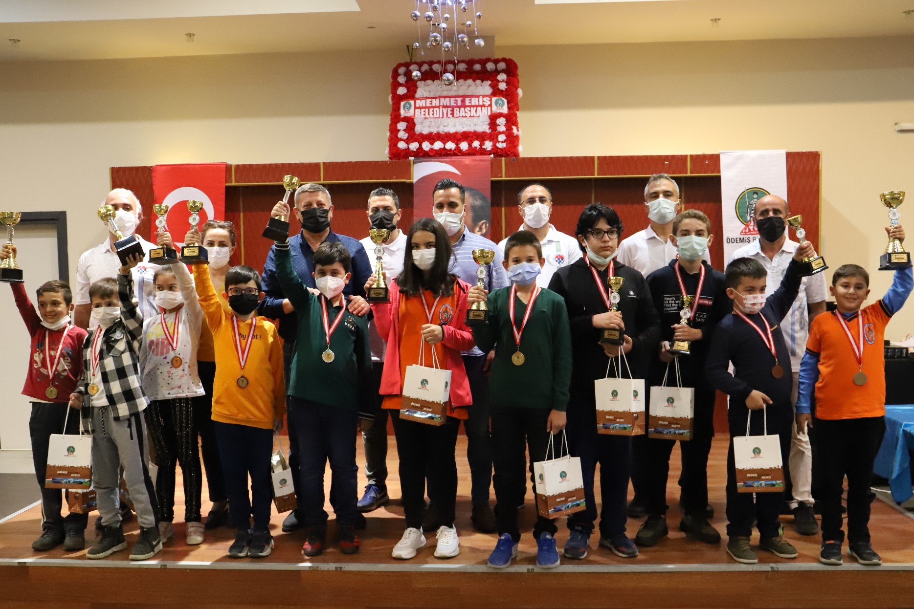 Ödemiş Belediyesi ve Türkiye satranç Federasyonu işbirliğiyle düzenlenen Cumhuriyet Bayramı Satranç Turnuvası tamamlandı. Satranç turnuvalarını geleneksel hale getiren Ödemiş Belediyesi’nin Türkiye Satranç Federasyonu işbirliğiyle düzenlediği Cumhuriyet Bayramı Satranç Turnuvası 23-24 Ekim 2021 tarihlerinde Belediye Düğün Salonu ve Kongre Merkezi'nde yapıldı. 10 yaş altı ve 14 yaş altı olmak üzere iki kategoride çevre il ve ilçelerden de geniş bir katılımla gerçekleşen satranç turnuvasında genel klasmanda ve Ödemişli oyuncular arasında ilk üçe giren öğrencilere Gazi Mustafa Kemal Atatürk’ün ölümsüz eseri Nutuk ile kupa ve madalya takdim edildi. Dereceye giren öğrencilerin ödüllerini Ödemiş Belediye Başkan Yardımcısı Ufuk Kızıler, Kültür ve Sosyal İşler Müdürü İlknur Gündüz, Uluslararası Satranç Hakemi ve turnuvanın Başhakemi Abuzer Altuntaş ve turnuva Koordinatörü Mehmet Ünlü verdi. Ödemiş Belediye Başkan Yardımcısı Ufuk Kızıler, Ödemiş Belediyesi’nin eğitime ve gençliğe yönelik organizasyonlara desteğinin sürdüğünü belirterek, “Belediye Başkanımız Sayın Mehmet Eriş’in öncülüğünde gençlik adına güzel bir heyecan yaratan bu güzel satranç turnuvalarının devamını getirmeyi planlıyoruz. İki gün boyunca burada katılım gösteren ve heyecanımızı paylaşan oyuncularımızı ve ailelerini tebrik ediyoruz” dedi.