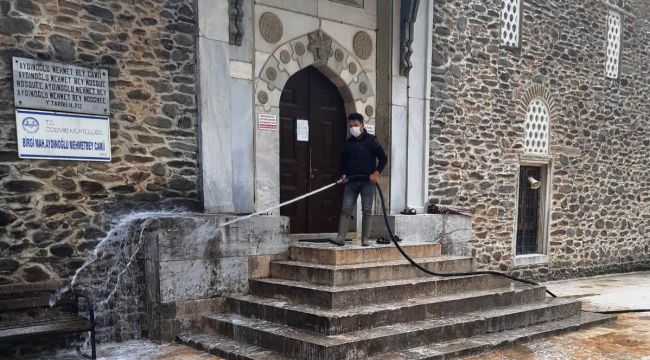 İzmir Büyükşehir Belediyesi Çevre Koruma ve Kontrol Şube Müdürlüğü ekipleri de kentteki camilerde kapı, halı, kolon, gibi temasın olabileceği yerleri dezenfekte ediyor. Camilerdeki hijyen ve dezenfeksiyon çalışmaları periyodik olarak sürdürülecek.