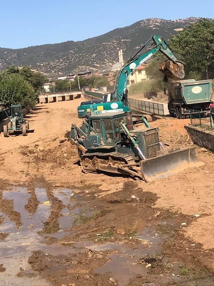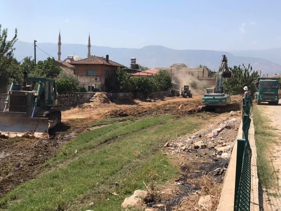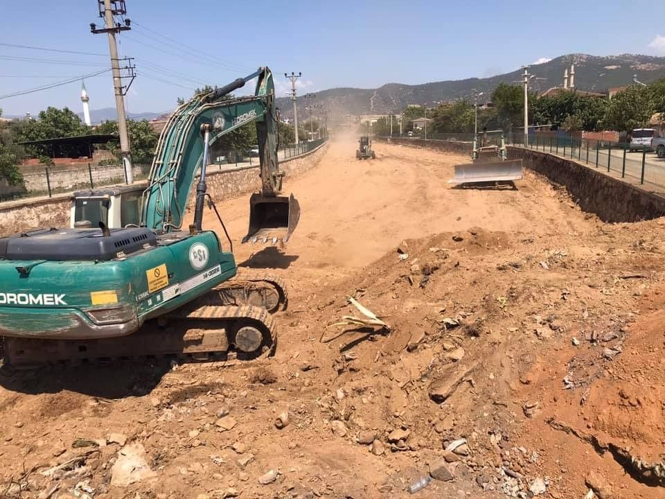 İzmir'in Ödemiş ilçesine bağlı Çaylı Mahallesinde bulunan dere yatağı, Devlet Su İşleri (DSİ) tarafından temizlendi.