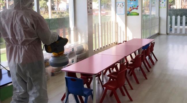 Koronavirüs ile mücadele sürecinde hijyen ve dezenfeksiyon çalışmalarını aralıksız sürdüren Ödemiş Belediyesi, 1 Haziran’dan itibaren kontrollü normalleşme süreci kapsamında hizmet verebilecek olan belediye sosyal tesislerini, işyerlerini ve özel kreş ve gündüz bakımevlerini dezenfekte ediyor.