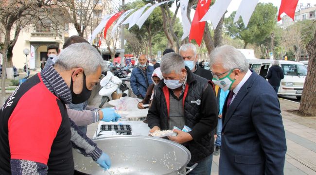 Ödemiş Belediye Başkanı Mehmet Eriş, “Çanakkale Zaferimizin 106. yıl dönümünde Anafartalar Kahramanımız Gazi Mustafa Kemal Atatürk’ü, silah arkadaşlarını, aziz şehitlerimizi ve gazilerimizi saygı, minnet ve rahmetle anıyoruz. Biz de Ödemiş Belediyesi ailesi olarak 18 Mart Çanakkale Zaferimizin yıl dönümü ve Şehitlerimizi Anma Günü öncesi şehitlerimizi anma ve ruhlarının şad olması adına dualarımızı iletmek üzere pilav hayrında bir araya geldik. Katılan herkese, emeği olanlara teşekkür ediyoruz.