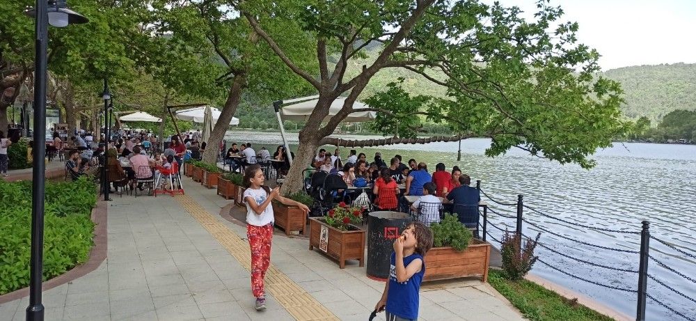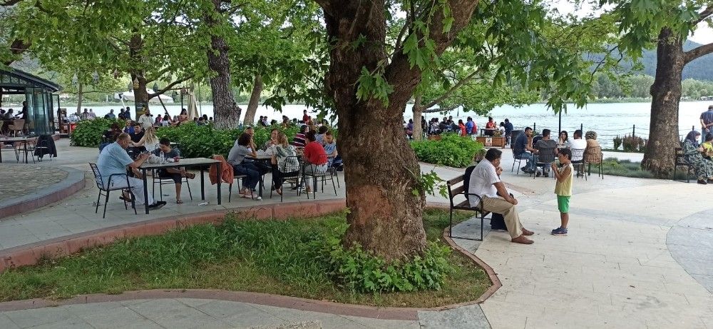 Göl çevresine serinlemek için gelen kimi vatandaşlar, çocuklarıyla birlikte balık avlayarak vakit geçirirken, kimi vatandaşlar da piknik yapıp ağaç gölgesinde serinledi. Göl kenarındaki çay bahçeleri ise tamamen doldu. Bu arada bazı vatandaşların mangal yaktıkları ve maske ve mesafe kurallarına uymadıkları görüldü.