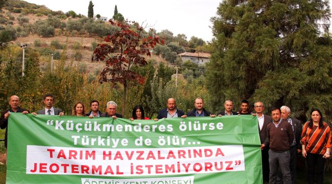 Bademli Fidancılık Tarımsal Kalkınma Kooperatifi Başkanı Selçuk Bilgi ve yönetim kurulu üyeleriyle gerçekleşen görüşmenin ardından konuşan Ödemiş kent konseyi Başkanı Mehmet Taşlı, “İzmir’de 16 tane ilçede, 33 bölgeyi kapsayan jeotermal kaynak arama ve 2 ilçede de işletmeyi kapsayan ihaleyle ilgili görüşlerimizi paylaşmak üzere kentimizdeki üretici kooperatiflerimizle, muhtarlarımızla bir araya geliyoruz. Küçük Menderes havzası birinci sınıf tarım arazilerine sahip. Türkiye’nin çok önemli tarım merkezlerinden birisi. İzmir’de 950 bin dekar alandan bahsediyoruz. Ödemiş’te Mescitli ve Yeniceköy’den bölgeler var. Biz yeraltı zenginliklerimizin değerlendirilmesine karşı değiliz. Bunun altını çok iyi çizmek gerekiyor. Fakat burada vermek istediğimiz mesaj, Küçük Menderes havzasındaki tarım alanları gerçekten korunması gereken alanlardır. Küçük Menderes havzası, Gediz havzası koruma havzalarıdır. Buraya yapılacak jeotermal santrallerin geri dönüşü olmayan zararlar vereceğini Aydın gibi somut örneklerle gördüğümüz için bu anlamda herkesi duyarlı olmaya çağırıyoruz” dedi.Hükümet Meydanı’nda toplantı