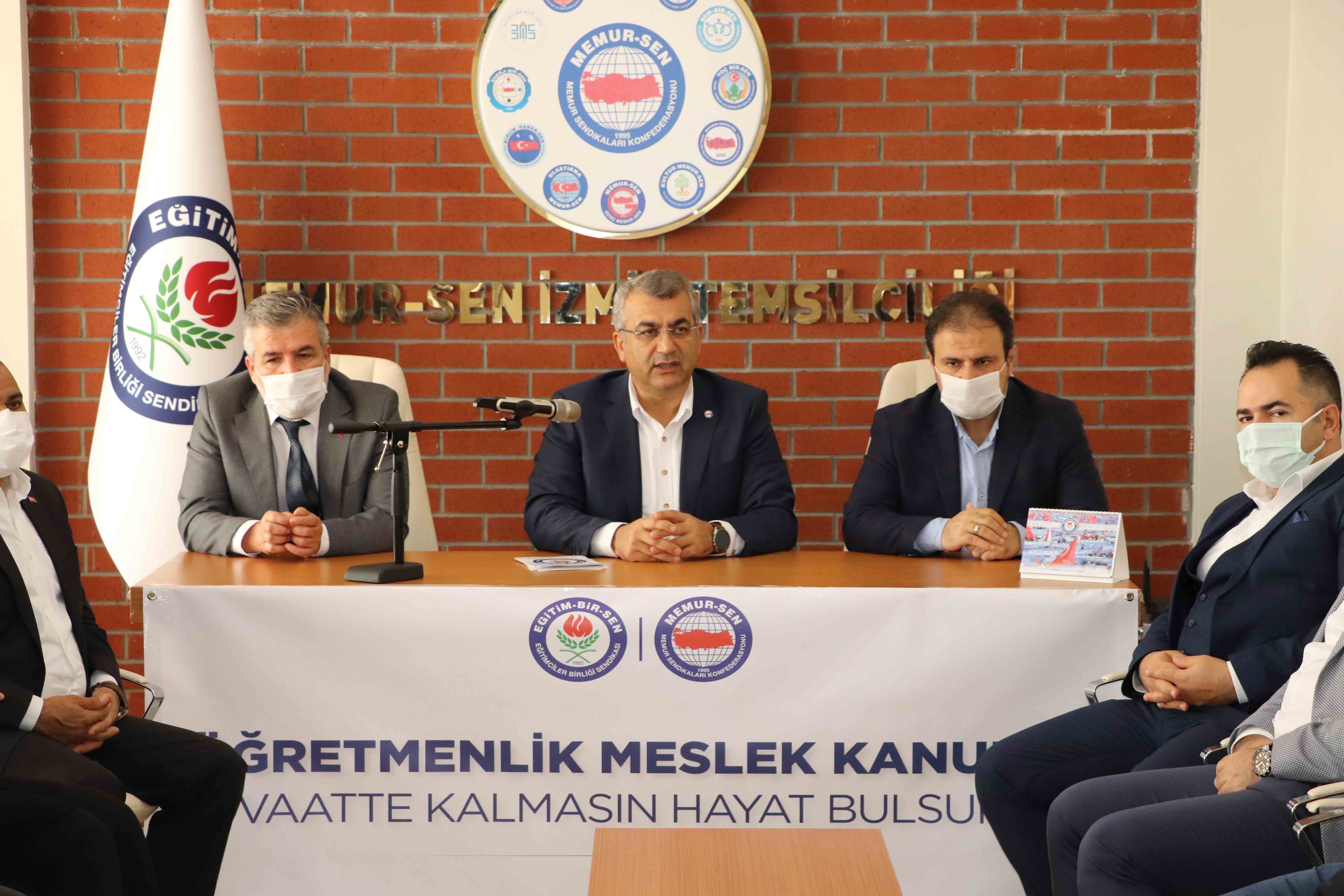 Eğitim-Bir-Sen İzmir 1 No’lu Şube tarafından gerçekleştirilen basın toplantısına Şube Yönetim Kurulu Üyeleri, İlçe Temsilcileri ve Eğitim-Bir-Sen üyeleri katıldı. Toplantıda açıklamalarda bulunan Şube Başkanı Ali Kaya, “Mesleğin hak ettiği şekilde tanımlanması, sosyal zeminde öğretmenlerin itibarının, haklarının korunması ve artırılması, yönetmeliklerle, genelgelerle oluşan görev, yetki, ehliyet, liyakat noktasındaki dağınıklığın giderilmesi için meslek kanununun ivedilikle yürürlüğe konulması gerekmektedir. Zaman, vaatleri gerçeğe dönüştürme, hedefleri sonuca ulaştırma zamanıdır. Mesleğin itibarı korunmalı, öğretmenliğin meslek kanunu olmalı” ifadelerini kullandı. Ali Kaya konuşmasında şu ifadelere yer verdi; “Öğretmenlik insanlığın en kadim ve önemli mesleklerinden biridir”24 Kasım Öğretmenler Günü dolayısıyla eğitim çalışanlarının sorunlarına dikkat çekmek ve öğretmenlerin meslek kanunu talebini dile getirmek amacıyla düzenlediğimiz basın toplantısına hoş geldiniz.İnsanın, özünü keşfetmeye, kişiliğini inşa etmeye yönelik en büyük eylemi eğitimdir. Eğitimi, eğitim-eğitilen çerçevesinde, insanların birbirleriyle ilişkisinden, iletişiminden ve etkileşiminden beslenen akli süreçlerin hâkim olduğu ve ahlaki sonuçların hedeflendiği faaliyetler bütünü olarak kabul ediyoruz. Eğitimi, tam da bu yüzden hem bilim hem de hizmet noktasında vazgeçilemez, ertelenemez, yok sayılamaz, devre dışı bırakılamaz, alternatifi oluşturulamaz konumda görüyoruz.Eğitimde geriye düşenin ahlakta, adalette, merhamette, bilimde öne çıkması, teknolojide önde olması, ekonomik ve diplomatik düzlemde fark oluşturması mümkün olmaz. Öğretmenlik, insanlığın en kadim ve önemli mesleklerinden biridir. Öğretmen, çocuklarımızın şuur sermayesini artırma, bilgi haznesini büyütme, idrak zeminini güçlendirme, hikmeti keşfetme, hakikate ulaşma konusunda beşerin insanlaşması ve bireyin uzmanlaşması yolculuğunda hem rehber hem de rol modeldir. Bu vasıf, öğretmenlik mesleğinin tarih boyunca önemli ve değerli kabul edilmesinin de başlıca sebebidir.Eğitimde örnek gösterilen ülkelerde olduğu gibi, öğretmenliğin kamu sistemi içerisinde tanımlanmış eğitim-öğretim hizmetleri sınıfından müstakil bir meslek kanununa kavuşturulması hususu artık daha fazla ötelenmemelidir. Mesleğin hak ettiği şekilde tanımlanması, sosyal zeminde öğretmenlerin itibarının, haklarının korunması ve artırılması, yönetmeliklerle, genelgelerle oluşan görev, yetki, ehliyet, liyakat noktasındaki dağınıklığın giderilmesi için meslek kanununun ivedilikle yürürlüğe konulması gerekmektedir. “Meslek kanunumuzu istiyoruz, daha fazla beklemek istemiyoruz”Ülkemizde resmî ve özel eğitim kurumlarında fiilen görev yapan 1 milyon 200 bin öğretmen var iken, öğretmenin yetiştirilmesinden emekliliğine kadar öğretmenlik mesleğini bütün olarak ele alan bir Öğretmenlik Meslek Kanunu’nun olmaması; hukuki açıdan boşluk, mesleki açıdan ise yoksunluktur.Kanun, hedefler ve gerçekler bağlamında uluslararası standartlara uygun bir kariyer mesleği niteliğini taşımalı; öğretmenin etkinliğini artıracak, itibarını yükseltecek hükümler içermelidir. Meslek kanununun yapılması için gereken talep de yazılması için gereken birikim de var. Bundan sonra bir tek şeye ihtiyaç var. O da kanunun çıkarılmasını hızlandıracak irade. Bizler Türkiye’nin bütün illerinden hep birlikte o iradeyi harekete geçirmek için sesleniyoruz: Meslek kanunumuzu istiyoruz, daha fazla beklemek istemiyoruz.Öğretmenlik Meslek Kanunu’nun çıkarılması hedefine, 11. Kalkınma Planı’nda da Millî Eğitim Bakanlığı’nın 2023 Eğitim Vizyonu’nda da yer verilmesi, hem talebemizi doğruluyor hem de tepkimizi haklı kılıyor.Meslek kanununun çıkarılması noktasında niyet ve kararlılığın kamuoyuna deklare edilmesinin üzerinden iki yıl geçmesine rağmen, bugüne kadar kamuoyuna net, açık ve kesin bir içerik paylaşımı yapılmış değildir. Millî Eğitim Bakanlığı’nca yürütülen çalışma, hazırlanan taslak, öngörülmüş bir tasarım mutlaka başta yetkili sendika olmak üzere, paydaşlarla iş birliği içinde ele alınarak olgunlaştırılmalıdır. “Zaman, vaatleri gerçeğe dönüştürme, hedefleri sonuca ulaştırma zamanıdır”Bu noktada, öğretmenlik mesleğine, öğretmenlere, eğitime ve öğrencilerimize dair hassasiyetlerimizi, önceliklerimizi, talep ve beklentilerimizi şekillendiren, meslek kanununa dair çerçeve beklentimizi ifade eden hususlara da dikkat çekmek istiyoruz.OECD’nin yayınladığı ‘Dünya Standartlarında 21. Yüzyıl Okul Sistemi Nasıl İnşa Edilmeli?’ başlıklı raporda yer alan, ‘Eğitimin bir ülkenin gerçekten önceliği olup olmadığı bazı sorular sorularak anlaşılabilir: Öğretmenlik mesleğinin toplumsal statüsü nedir? Öğretmenlere ödenen ücretler benzer eğitim geçmişine sahip bireylere ödenen ücretlere kıyasla nasıldır? Çocuğunuzun öğretmen olmasını ister misiniz? Medyada okullar ve eğitim üzerine haberler ne kadar yer buluyor?’ şeklindeki soruları yetkililerin dikkatine sunuyoruz. Bu soruların her birini, politika belirleyici, politika tasarlayıcı ve uygulayıcı konumda olanların cevaplaması gerekiyor.Kesin olan bir şey var ki, PISA’da yüksek performans gösteren eğitim sistemlerinin çoğunda, öğretmenlere daha yüksek maaş verilmesi, eğitim geçmişinin daha fazla önemsenmesi, öğretmen niteliğinin artırılması ve öğretimin iyileştirilmesi odaklı eğitim harcamalarının payının daha fazla olması eğilimi bulunmaktadır.Eğitim çalışanlarının en güçlü sesi, genel yetkili sendikası olarak, gerek akademik yayınlar gerek raporlar gerekse alan