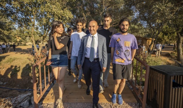 57 hektarlık özel bir alandaki Olivelo Yaşayan Parkı’nı gezen ve gençlerle sohbet eden Başkan Tunç Soyer, “Gençlik bir daha gelmiyor, doya doya gençliklerini yaşasınlar istiyorum. Bu alanlar en çok onlar için var. Tadını doyasıya çıkarsınlar. İlk kamp kuruldu sadece hasetten çatlıyorum. Keşke ben de gençlerin yerinde olabilsem” dedi.