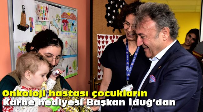 Bornova Belediye Başkanı Dr. Mustafa İduğ, Ege Üniversitesi Çocuk Hastanesi Onkoloji Servisi’nde yatarak tedavi gören çocukları ziyaret etti. başkan İduğ, eğitimlerini hastanede sürdüren 200 çocuğa karne hediyesi verdi.