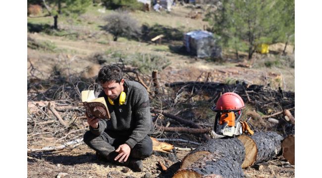 Bu işçilerin içinde öyle birisi var ki küçüklüğünden beri içinde hiç eksilmeyen kitap okuma aşkıyla, dinlenme molasında bile elindeki motorlu testereyi bırakıyor, koynundan çıkardığı kitaplarını okuyor. Mesaisi bittiğinde ise ormanın içindeki çadırına döner dönmez ekmek tahtasını kendine okuma masası yapıyor, kitaplarını okuyor kitapları ile ilgi notlar alıyor duygu ve düşüncelerini kağıda döküyor.