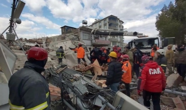 Kahramanmaraş merkezli 10 ilde yıkıma neden olan 7.7 ve 7.6 büyüklüğündeki depremlerin ardından bölgelerde artçı sarsıntılar sürüyor. Osmaniye’de Musa Şahin Bulvarındaki 4 katlı bina, bugün meydana gelen artçı depremde yıkıldı.İhbarla bölgeye sevk edilen ekipler, binada birilerinin bulunduğu bilgisi üzerine harekete geçti. Enkazda Manisa Büyükşehir Belediyesi İtfaiye Dairesi Başkanlığı ekiplerinin de katılımıyla arama-kurtarma çalışması başlatıldı. (SÖZCÜ)