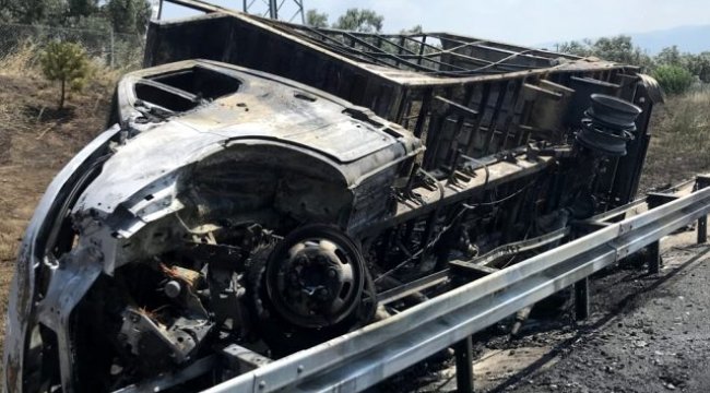 Gebze-Orhangazi-İzmir oto yolunda yatak yüklü kamyonet devrilerek alev aldı. Sürücü çevreden yetişenler tarafından araçtan yaralı olarak çıkarıldı. Kaza, saat 13.30 sıralarında Gebze-Orhangazi-İzmir oto yolunda Orhangazi gişeleri yakınlarında meydana geldi. Bursa'daki bir mobilya şirketinden yüklediği yatakları İstanbul'a götürmek üzere yola çıkan Zeynel Akyıldız (25) idaresindeki 16 ADC 532 plakalı kamyonet, otobanın Orhangazi gişelerini geçtikten sonra, iddiaya göre, sürücüsünün direksiyon başında uyumasından dolayı kontrolden çıktı. Bariyerleri aşan kamyonet devrilip alev aldı. Bir anda alev topuna dönen kamyonete yangın tüpleri ile ilk müdahaleyi çevreden yetişen sürücüler yaptı. Vatandaşlar araç içindeki sürücü Zeynel Akyıldız'ı araçtan çıkardı. Kaza mahalline itfaiye ve ambulans sevkedildi. İtfaiye ekipleri yanan kamyonete müdahale ederek alevleri kontrol altına aldı. Yaralı sürücü ambulansla Orhangazi Devlet Hastanesi'ne kaldırıldı. Kamyonet küle dönerken, mobilya şirketinin sahibi kaza sonrasında çekim yapan basın mensuplarına saldırıp hakaret etti. Jandarma ekipleri kazayla alakalı tahkikat başlattı.(İHA)