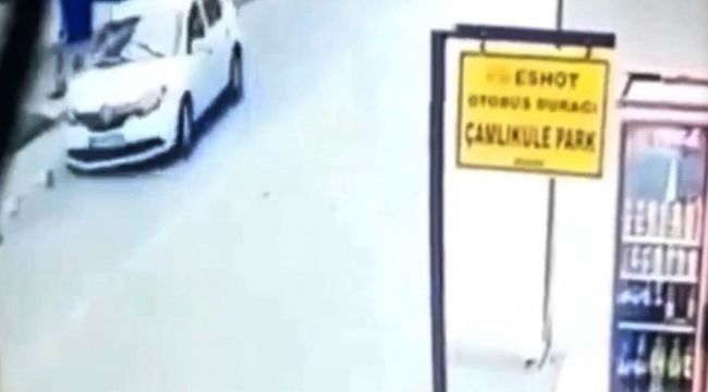 İzmir'de evinden çöp atmak için çıkan polis memuru bir otomobilin çarpması sonucu ağır yaralanırken, talihsiz adama çarpan aracın sürücüsünün olay yerinden kaçtığı kaza anı güvenlik kamerası tarafından saniye saniye kaydedildi.