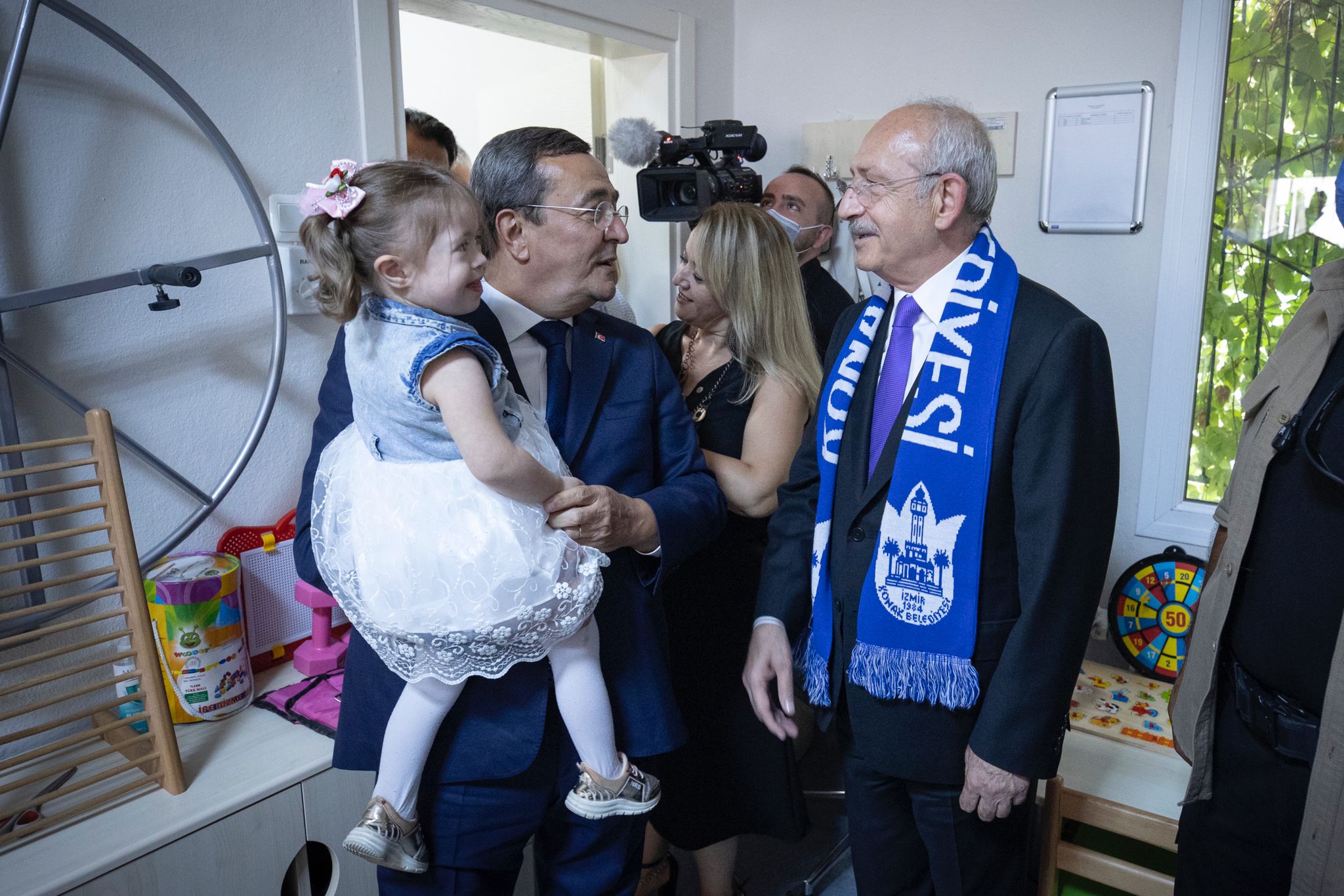 Kemal Kılıçdaroğlu, ilk adımlarını Konak Engelsiz Yaşam Köyü’nde atan minik Ege ve kısa sürede yürüme ve iletişim becerilerini geliştiren minik Rabia’yla da bir araya geldi. Her iki çocuğun da Konak Engelsiz Yaşam Köyü’ne ilk başladıkları günden bugüne kadar yaşadıkları değişim ve gelişim öyküsünü ilgiyle dinleyen Kılıçdaroğlu, Ege ve Rabia gibi özel çocukların hayatlarına dokunan Engelsiz Yaşam Köyü’yle ilgili şunları söyledi: