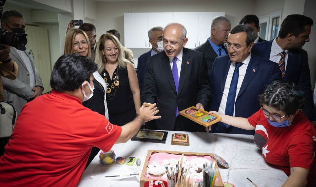 Konak Engelsiz Yaşam Köyü’ndeki tüm atölye ve sınıfları tek tek gezerek özel çocuklarla sohbet eden Kemal Kılıçdaroğlu’na müzik atölyesi öğrencilerinden İzmir Marşı sürprizi geldi. Piyanoda hünerlerini sergileyen çocuklar, Genel Başkan Kılıçdaroğlu’na duygu dolu anlar yaşattı. Seramik atölyesinde ise öğrenciler hazırladıkları seramik tabloları Kılıçdaroğlu’na hediye etti. Kılıçdaroğlu, Engelsiz Yaşam Köyü’nde gelen konukların el izlerinin olduğu panoya el izini bırakmayı da unutmadı.