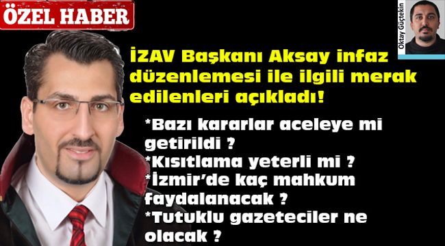 Oktay GÜÇTEKİN / İzmir Gündemi - Türkiye’yi saran coronavirüs salgını sonrası gözler kapasitesinin üstünde mahkum bulunan cezaevlerine çevrilmişti. Cezaevlerinde bulunan tutukluların olası bir salgından daha az etkilenmemesi adına geçtiğimiz hafta Cumhur İttifakı üyeleri olan AKP ve MHP Milletvekilleri bir araya gelerek ceza infaz düzenlemesi taslağı oluşturdu. TBMM Adalet Komisyonunda kabul edildikten sonra TBMM Genel Kurulu'na gönderilen teklif tasarısı, TBMM’de bugün itibari ile görüşülmeye başlandı. Görüşmelerin ardından alınacak karar cezaevlerinde bulunan bir çok mahkumu ve ailelerinde merak uyandırırken, İzav Yönetim Kurulu Başkanı Atalay Aksay, gazetemizin sorularını yanıtladı. Merak edilen konulara cevap veren Av. Başkan Aksay, tutuklu gazeteciler hakkında da açıklamalarda bulundu.