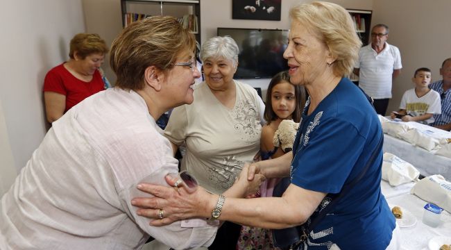 Farklı noktalardaki semt merkezlerini ziyaret eden Pekdaş, kursiyerlerin hem bayramını kutladı hem de onlarla bol bol sohbet edip, taleplerini dinledi. Bayramlaşmalara ilk olarak Cici Park içinde yer alan Erşefpaşa Semt Merkezi’nden başlayan Başkan Pekdaş’ı burada kadınların yanı sıra minik kursiyerler karşıladı. Konak Belediyesi’nin yaz okuluna gelen çocuklar etkinlikte sergiledikleri dans gösterileriyle beğeni topladı. Mini gösteri Başkan Pekdaş’ın yanı sıra izleyenlerden bol bol alkış aldı.