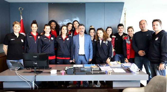 Bayraklı’yı çocukların, gençlerin ve kadınların omuzlarında yükseltme hedefiyle göreve geldiklerini ve bu anlamda onların sosyal hayatta daha fazla yer almalarını sağlayan en önemli konulardan birinin spor olduğunun bilincinde olduklarını belirten Başkan Sandal, “ Bizim görevimiz sizin ihtiyaçlarınızı karşılamak sizin de hep daha ileriye gitmek” dedi. Sandal, “Hedefimiz Bayraklı’ya yeni bir çehre kazandırmak. Bayraklı’nın tanınırlığını, bilinirliğini artırabilmek. Bu anlamda sizin de desteğiniz büyük. Biz elimizdeki tüm imkânları kullanarak, elimizden ne geliyorsa yapacağız. Bir de birinci ligde olursanız daha güzel. Bizim zaten projemiz dünya çocuk ve gençlik kenti Bayraklı. İlçemizi çocuklarımızın, gençlerimizin ve kadınlarımızın omuzlarında yükseltmek istiyoruz” diyerek, sporculara başarılar diledi.