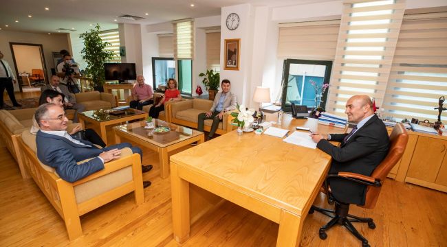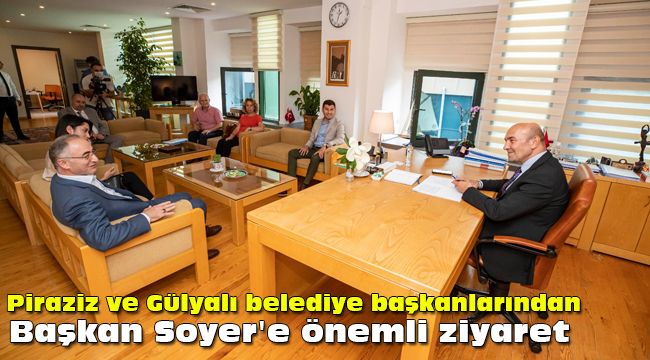 Giresun Piraziz Belediye Başkanı Hüseyin Görgülüoğlu ve Türkiye’nin en genç belediye başkanı sıfatını taşıyan Ordu Gülyalı Belediye Başkanı Ulaş Tepe İzmir Büyükşehir Belediye Başkanı Tunç Soyer’i İzmir Sanat’taki çalışma ofisinde ziyaret etti. Başkan Soyer kooperatifçilik ve gönüllü hasat konularındaki deneyimlerini paylaştı.