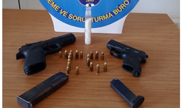 Çiğli İlçe Emniyet Müdürlüğü Suç Önleme ve Soruşturma Büro Amirliği ekipleri, uyuşturucu madde ve silah taşıdıkları şüphesiyle 3 kişiyi takibe aldı. Şüphelilerin ilçeye bağlı Güzeltepe Mahallesi'nde bir evden çıktıklarını gören ekipler, M.Z.K., S.K. ve N.D. isimli 3 şüpheliyi durdurdu. Şüphelilerin yapılan üst aramasında 40,80 gram metamfetamin maddesi, 2 adet tabanca ve 19 adet fişek ele geçirildi.