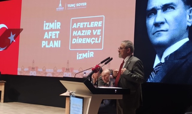 Prof. Dr. Naci Görür İzmir'i deprem dirençli bir kent yapabilmek için 7 bileşeni dirençli hale getirilmesine dikkat çekti. Kentin deprem dirençli yapılabilme modeli var. Halkın anlamadığı birşeyi söylememin anlamı yok. Kent dediğimiz zaman kenti oluşturan bileşenler var. Kenti deprem dirençli yapmak istiyorsak her bileşeni, deprem dirençli yapmalısınız. Türkiye Cumhuriyeti'nin bilim insanı bunu yapabilir. Yönetim birinci bileşen, belediye başkanı, belediye başkanı olmadan önce bir başka bir görevi var. Depremi bilmez ama biz yönetici seçiyoruz. Seçtiğimiz her belediye başkanı deprem, afet eğitimi almalı. Kenti , kent idaresini deprem dirençli yapmazsanız eğitmezseniz ,kentte hangi birimin önemli olduğunu bilemez peşine düşemezsiniz. Halk ikinci bileşen, deprem kentinde yaşadığını bilmeyen deprem idrakı olmayan bir halkla kenti depreme hazırlayamazsınız. Deprem kültürü almış halk, inşaatta yanlış yapmaz. Gece kondu mantığı ile çalışmaz. Halkı eğiteceksiniz. Okullarda her yerde bilgi birikimiyle donatacaksınız ve bunların hepsi de yarın başlanılır yarın yapılır. Alt yapı üçüncü bileşen, bütün belediye başkanlarına sorsanız yol, kanalizasyon, doğalgaz şebekesi vs belediye başkanlarına biz onları yaptık diyorlar. 10 ilinde yaşanan depremden önce başkanları deprem gelmeden biz hazırız diyorlardır. Deprem geldiği zaman alacağı hasar nedir,şimdiden ölçülüp bakılmalı. Yapı stoğu dördüncü bileşen, ne kadar yapı stoğumuz var. Ne kadarı 99 sonrası ve öncesi yapıldı, iyi kötü biliyoruz araştırabiliriz. Depreme dirençsiz olanları ya güçlendireceksiniz ya da yıkacaksınız. Kentsel dönüşüme sokacaksınız. Çevre ve ekosistem , deprem en büyük çevre felaketi kanalizasyon içme suyuna karışıyor. Deprem molozlarını bertaraf etmek, yönetimde öyle rast gele kamyonla götürmek olmaz. Geri dönüşüm deprem molozlarında önemli. Ekonomi son bileşen, İzmir Batı Anadolu'nun ekonomisini elinde tutan bir kent, İzmir'de aniden meydana gelen bir deprem düşünün, İstanbul ekonominin %60'nı elinde tutuyor. İstanbul bütün Marmara da ekonomi çarklarını durdurur. Ekonomi çarkları durursa Marmara bölgesi çöker. Türkiye ekonomik bağımsızlığını değil siyasi bağımsızlığında kaybeder. Ekonomi çarkı çökmemeli. İzmir'i böyle düşünebiliyor musunuz? Pazar kaybetmiş güçlerini kaybetmiş bir İzmir . Bütün Batı Anadolu'nun çöktüğünü düşünebilirsiniz. Bütün Türkiye'ye örnek olun. Herkes depremi konuşur birileri bir şey beklediği zaman çıkın ortaya deprem dirençli kent yaratacağız diyin tüm Anadolu peşinizden gelir."dedi