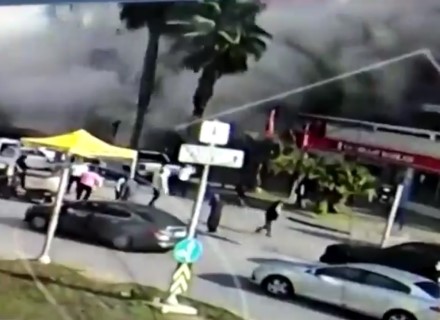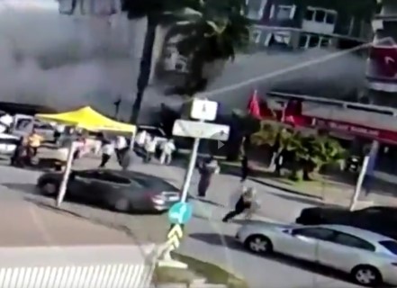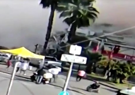 Binanın çökme anı bir güvenlik kamerası tarafından saniye saniye kaydedildi.
