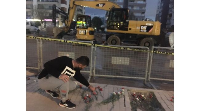 8 katlı Rızabey Apartmanı enkazından geriye ise konulan karanfiller kaldı.
