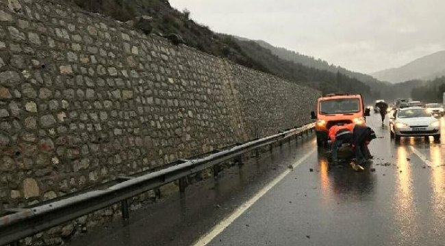 MANİSA'da sağanak yağış sonrası yaşanan heyelan nedeniyle Sabuncubeli Tüneli'ne 100 metre mesafedeki tali yolda trafik 1 saat süreyle tek şeritten verildi.
