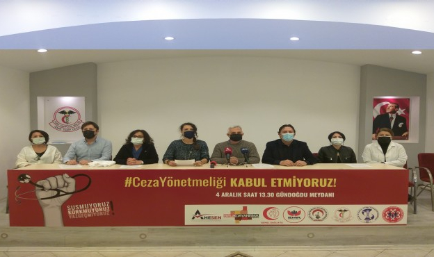 Cumhurbaşkanı Recep Tayyip Erdoğan’ın imzası ile 30 Haziran’da yayımlanan “Aile Hekimliği Sözleşme ve Ödeme Yönetmeliği”ne göre görevleriyle ilgili olarak sosyal medya paylaşımı yapan, tweet atan aile hekimine 50 ceza puanı kesilecek, basına üç kez izinsiz konuşan aile hekiminin sözleşmesi yenilenmeyecek. “Ceza yönetmeliği” olarak tanımlanan düzenlemeye yönelik tepkiler İstanbul ve İzmir başta olmak üzere çeşitli illerde iş bırakma eylemlerine dönüşürken, kentteki sağlık meslek örgütleri de konuya ilişkin basın açıklaması düzenledi. İzmir Tabip Odası’nda gerçekleşen toplantıda bir araya gelen İzmir Sağlık Platformu üyeleri, yönetmelik geri çekilinceye kadar mücadeleye devam edeceklerini vurguladılar ve 4 Aralık’ta Gündoğdu Meydanı’nda düzenlenecek “Ceza Yönetmeliğini Kabul Etmiyoruz” mitingi için çağrı yaptılar.