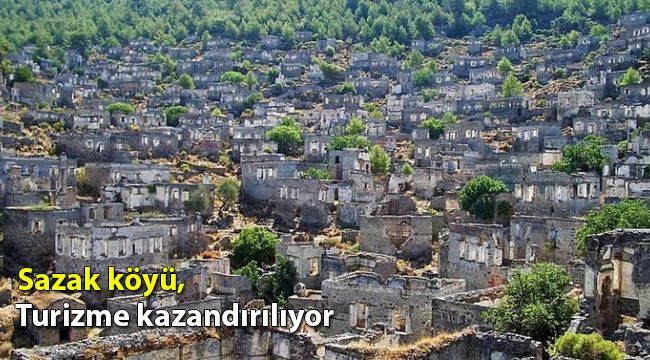 Karaburun’a bağlı Sazak Köyü, Fethiye’de her yıl yüz binlerce turiste ev sahipliği yapan Kayaköy ile aynı kadere sahip olan bir Rum mübadele köyü.“Kentsel SİT Alanı” ilan edilen Sazak, koruma planı ve restorasyon sonrasında ulusal ve uluslararası turizme kazandırılacak.