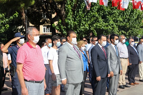 Cumhuriyet Meydanı’nda düzenlenen tören Albay Çolak İbrahim Bey Anıtı’na çelenk bırakılması ve ilçe şehitliği ziyareti ile sona erdi.