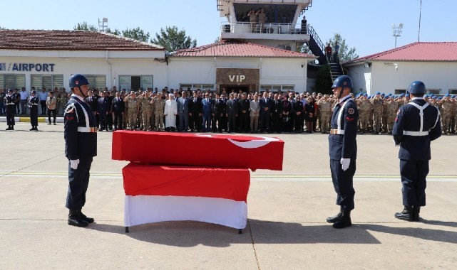 Evli ve 1 çocuk babası şehit Ceylanın Türk bayrağına sarılı cenazesi, alana getirildi. Bir dakikalık saygı duruşunun ardından şehidin öz geçmişi okundu. Duaların ardından Şehit Jandarma Uzman Çavuş Aydın Ceylanın cenazesi uçakla memleketi Çanakkale’ye gönderildi. (DHA)