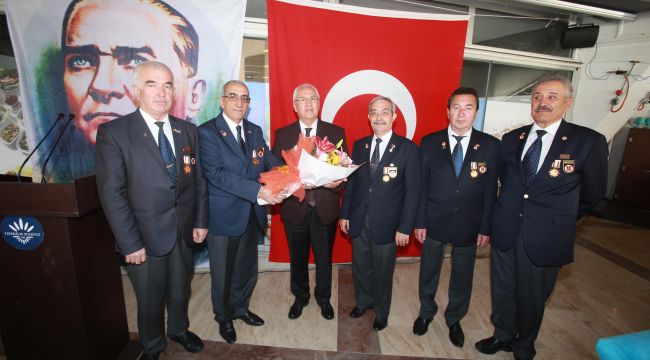 Başkan Selvitopu’nun konuşmasının ardından Türkiye Muharip Gaziler Derneği İzmir Şube Başkanı Mehmet Gökmen ve yönetimi Başkan Selvitopu’na çiçek sunarak, bu anlamlı buluşma için teşekkür etti.