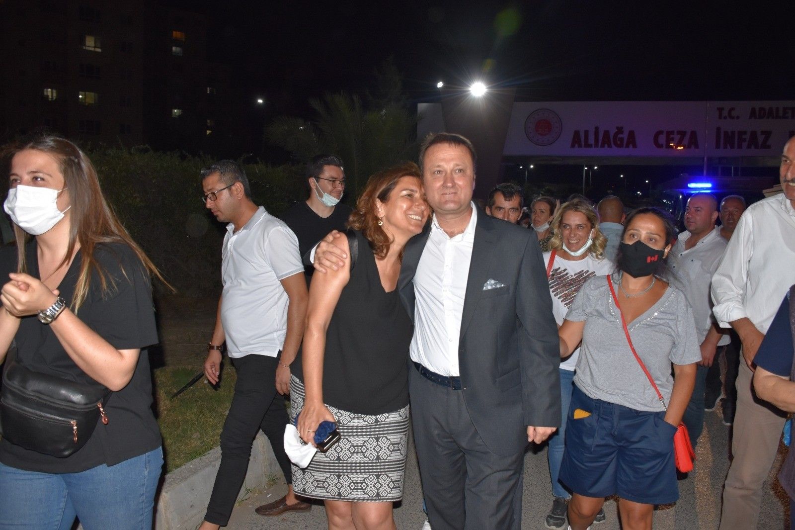 Menemen Belediyesi eski Başkanı Serdar Aksoy'un da aralarında bulunduğu tutuklu 10 kişi, gece saatlerinde Aliağa Ceza İnfaz Kurumu'ndan çıkartıldı. Aksoy, kendisini dışarıda bekleyen eşi Dilek Aksoy ve sevenleri ile yeniden buluşurken, tahliye edilen diğer sanıklar da aileleri ve sevenleri ile yeniden buluştu. Cezaevinden çıkan Serdar Aksoy, bir süre dinlenerek ailesine ve kendisine zaman ayıracağını belirterek ilerleyen günlerde de bir basın açıklaması yapacağını bildirdi.