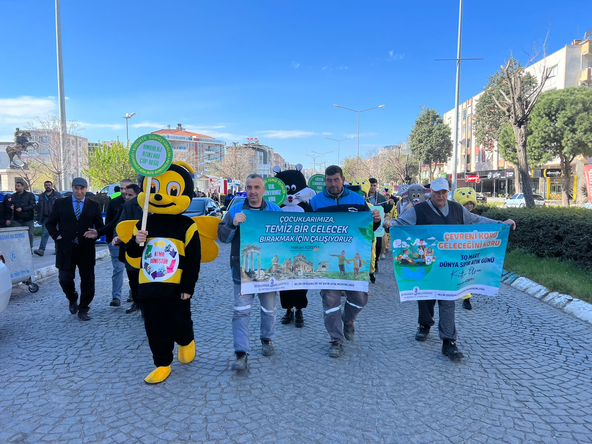 Cumhurbaşkanı Recep Tayyip Erdoğan’ın eşi Emine Erdoğan’ın 2017 yılında başlattığı ve 105 ülkenin desteği ile BM tarafından ilan edilen 30 Mart Uluslararası Sıfır Atık Günü için Bergama’da düzenlenen etkinlikler kortej yürüyüşü ile başladı. ‘İkinci bir Dünya Yok’ ana fikri ile ‘Temiz Bir Çevre’ye dikkat çekmek üzere düzenlenen kortej yürüyüşünde “Sıfır Atık” için farkındalık oluşturulmaya çalışıldı. Mehmet Akif Ersoy Parkı’ndan (Bayraklı Park) başlayan kortej yürüyüşüne öğrenciler, sporcular, öğretmenler, belediye çalışanları ve vatandaşlar katıldı. Ellerindeki dövizlerle Kültür Merkezi’ne kadar yürüyen herkes ‘Daha Yaşanabilir Bir Dünya’ için yapılması gerekenlere, ağaçların korunması gerektiğine, Her şeyin çöpe atılmaması gerektiğine, Sularla birlikte insanlığında yok olacağına, Ambalaj atıklarının çöp olmadığına dikkat çektiler.