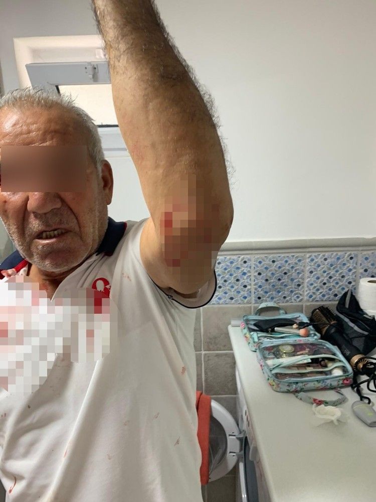 Yaşadığı olayı anlatan Nedim A., "O yol onların özel mülkünde değil. Yan evde kalan şahıslar, kiracı olduğumuz için o yoldan geçmememizi söyledi. Oysa bu yolu sitedeki pek çok kişi kullanıyor. Kimseyi rahatsız etmeden yolu kullanıyoruz. Yan evdeki şahıslar bize tepki gösterince kızım ev sahibini arayarak durumu anlattı. Bizim o yolu kullanmak hakkımız ancak yan evdeki şahıslar daha uzun bir yoldan geçerek denize gitmemizi istedi. Bu sebeple kendileriyle sözlü tartışma yaşadık. Ancak Mehmet T. bana ağır küfürler etti, ardından da ismini öğrenemediğim 20'li yaşlardaki oğlu küfrederek evden çıkıp üstüme saldırdı. Baba ve oğlu, beni eşim, kızım ve 8 yaşındaki torunumun yanında darp etti. Oğlu boğazımı sıkıp nefes almamı engelledi. Babası da o sırada üstüme saldırdı. Bu sırada kafamı da taşa vurdular. Kendimi kurtarmak için Mehmet T.'nin oğlunun kolunu ısırdım. Kızım ve eşim kavgayı ayıramadı. Komşular sesleri duyup yardıma geldi ve beni kurtardı. Bir yolu bile paylaşmıyorlar. O yolu kullanırken kimseyi rahatsız etmemiştik. Ancak bize hakaret ettiler. Ardından da beni darp ettiler. Kafamdan ve kolumdan darbeler aldım. Yüzüm gözüm kan içinde kaldı. Olayla ilgili darp raporu aldım. Kafama dikiş atıldı. Mehmet T.'nin oğlu da, kendimi kurtarmak için kolunu ısırdığım için darp raporu almış" dedi.