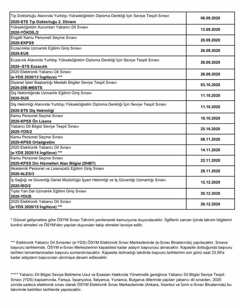 ÖSYM’nin corona virüsü tedbirleri kapsamında güncelliği takvim şöyle: