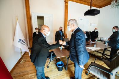 İzmir Büyükşehir Belediye Başkan Vekili Mustafa Özuslu ve İzmir Büyükşehir Genel Sekreter Yardımcısı Ertuğrul Tugay’ın da eşlik ettiği toplantıda konuşan CHP İzmir Milletvekili Kani Beko, “İzmir’de iki milyonu aşan Balkanlardan göç etmiş yurttaş adına teşekkür ederim. Bölgeyi geziyorum. Sizin farklı belediyecilik ve hizmet anlayışınız konuşuluyor. Balkanların sesi olabilmek için ortak projeler yapmak isteriz. Balkan çalıştayı, festivali, Balkan ülkelerinin elçileri ile ortak faaliyetler ve Balkan ülkelerindeki belediyelerle dostluk ilişkileri kurabilmek için köklü bir dayanışmaya ihtiyaç var” dedi.