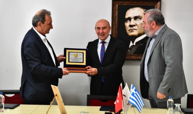 İzmir Büyükşehir Belediye Başkanı Tunç Soyer, Yunanistan’ın Attika bölgesindeki Vyronas’ın Belediye Başkanı Grigoris Katopodis ve Kesariani’nin Belediye Başkanı Christos Voscopoulos ile "Dostluk ve İşbirliği Beyanı'na imza attı. Başkan Tunç Soyer, “Barış için mücadele etmek her zaman değerlidir. Gerginlik arttığı zaman bu, daha da önemlidir” dedi.İzmir Büyükşehir Belediye Başkanı Tunç Soyer Yunanistan’ın Attika bölgesindeki Vyronas’ın Belediye Başkanı Grigoris Katopodis ve Kesariani’nin Belediye Başkanı Christos Voscopoulos ile Ahmed Adnan Saygun Sanat Merkezi’nde bir araya gelerek “Dostluk ve İşbirliği Beyanı” imzaladı. İmza töreninde Ege Barış ve İletişim Derneği Başkanı Bülent Tanık da yer aldı.“Daha iyi bir gelecek için beraber çalışmaya devam edeceğiz”İzmir Büyükşehir Belediye Başkanı Tunç Soyer, “Sizleri burada ağırlamaktan mutluluk duyuyorum. Ülkeler arasındaki gerginliğin arttığı bu zamanlarda barış girişimlerinin daha önemli olduğunu düşünüyorum. Barış için mücadele etmek her zaman değerlidir. Gerginlik arttığı zaman bu daha da önemlidir. Bu nedenle toplantı için Bülent Tanık’a ve arkadaşlarına teşekkür etmek istiyorum. Bu beyanname ilişkileri geliştirmek için çok değerli. İki belediye başkanına de çok teşekkür ediyorum. Daha iyi bir gelecek için beraber çalışmaya devam edeceğiz” dedi.Vyronas Belediye Başkanı Grigoris Katopodis ve Kesariani Belediye Başkanı Christos Voscopoulos ise imzalanan “Dostluk ve İş Birliği Beyanı” için Başkan Tunç Soyer’e teşekkür ederek hediye verdi.Soyer’e "Barışa Ömür Boyu Emek Ödülü"İmza töreni öncesinde "Barışa Ömür Boyu Emek” ödül töreni düzenledi. Ege Barış ve İletişim Derneği tarafından ilki 2019’da verilen Barışa Ömür Boyu Emek Ödülü’ne bu yıl İzmir Büyükşehir Belediye Başkanı Tunç Soyer ve Uluslararası Örgütler ve Küreselleşme Gözlemevi (PADOP) Başkanı Panos Trigazis layık görüldü. Ege Barış ve İletişim Derneği Başkanı Bülent Tanık, törende PADOP Başkanı Panos Trigazis'e ödülünü verdi. Tanık, Başkan Tunç Soyer’e ödülünü ilerleyen günlerde takdim edeceklerini ifade ederek “Tunç Soyer, Seferihisar Belediye Başkanlığı döneminden, hatta çok daha öncesinden başlayarak Ege’deki barışçı ortamın kurulmasına verdiği katkı, insanların doğayla uyumlu yaşamasına dönük vizyonu ve yaşam pratiği ile bu ödüle uygun görüldü” dedi.